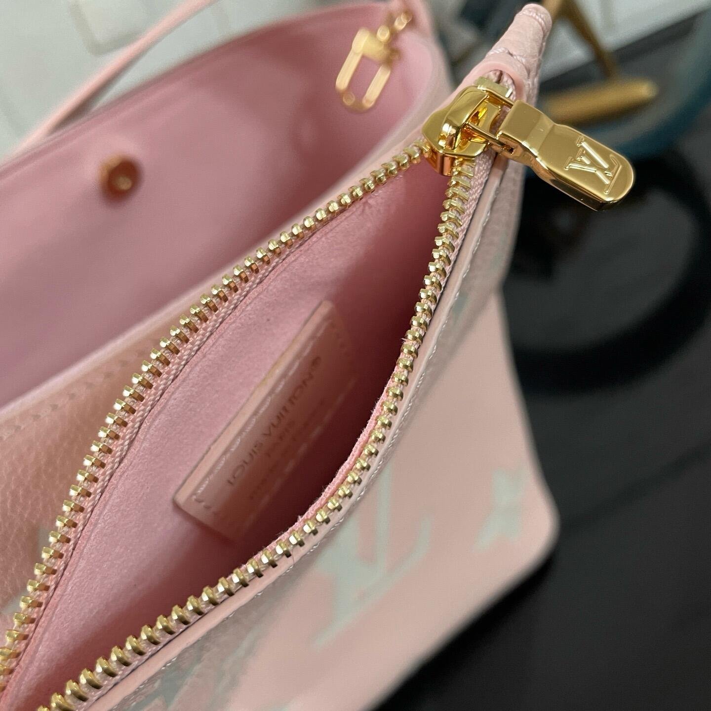 Inspired by the LV Milky Way collection, this fresh take on the All In BB handbag adds a pop of color to any look. Showcasing the House’s emblematic Monogram Empreinte leather, this two-in-one design is elevated with gold-toned hardware and comes with an extra strap to wear it cross-body. Signature details include a name tag and padlock.
