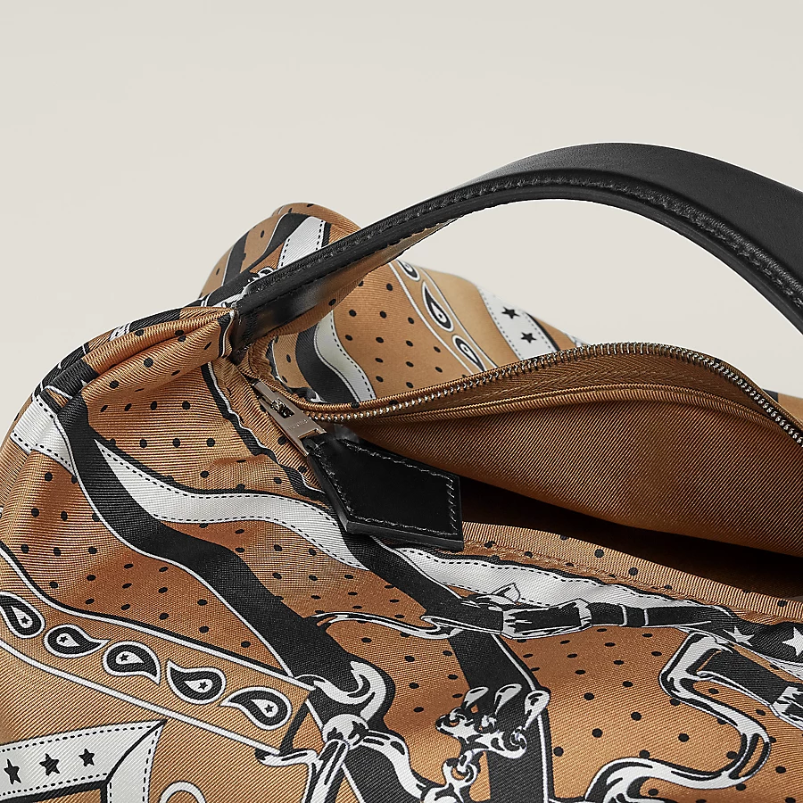 Bag in “La Promenade du Matin Bandana” printed silk and Hunter cowhide