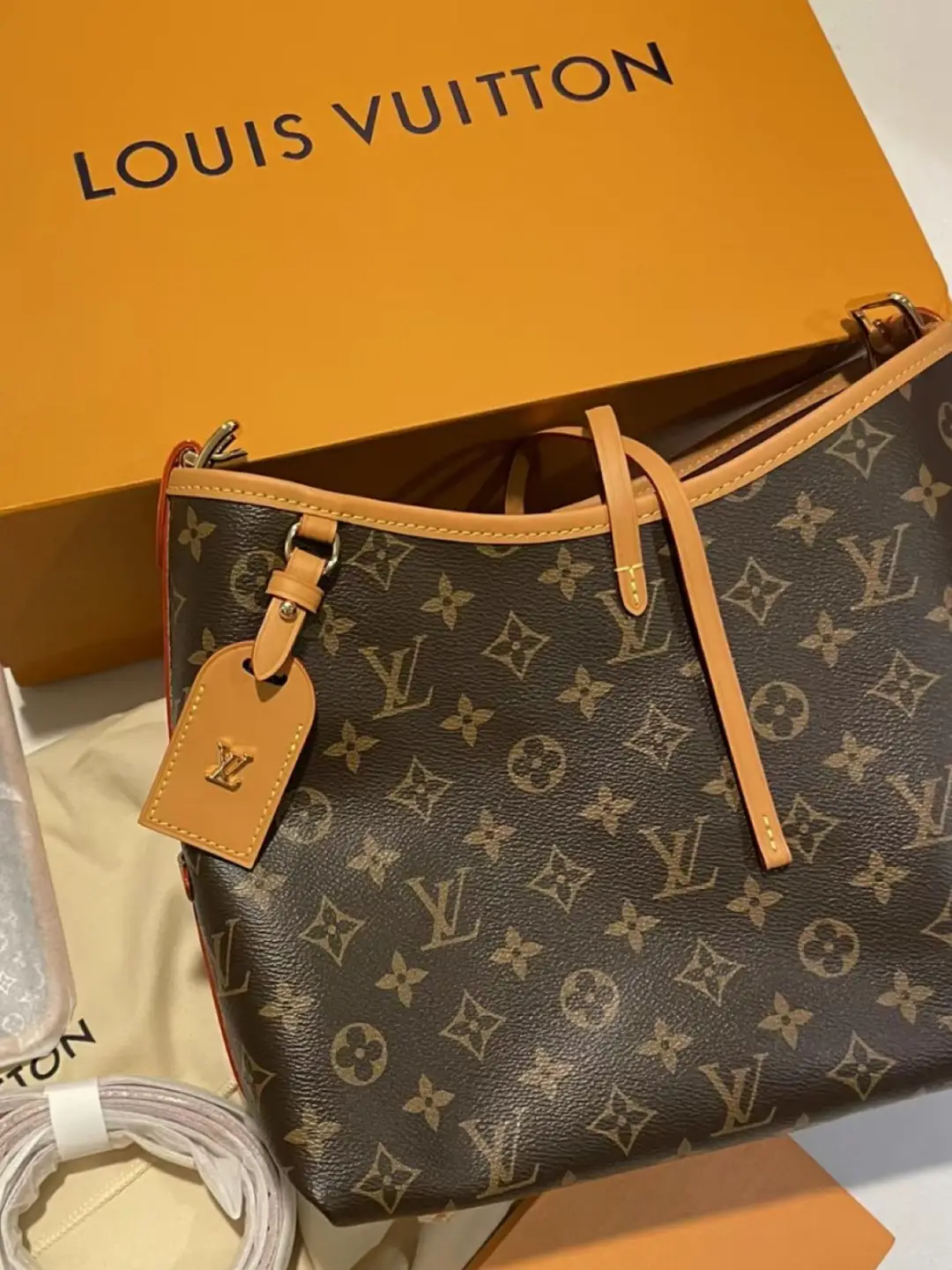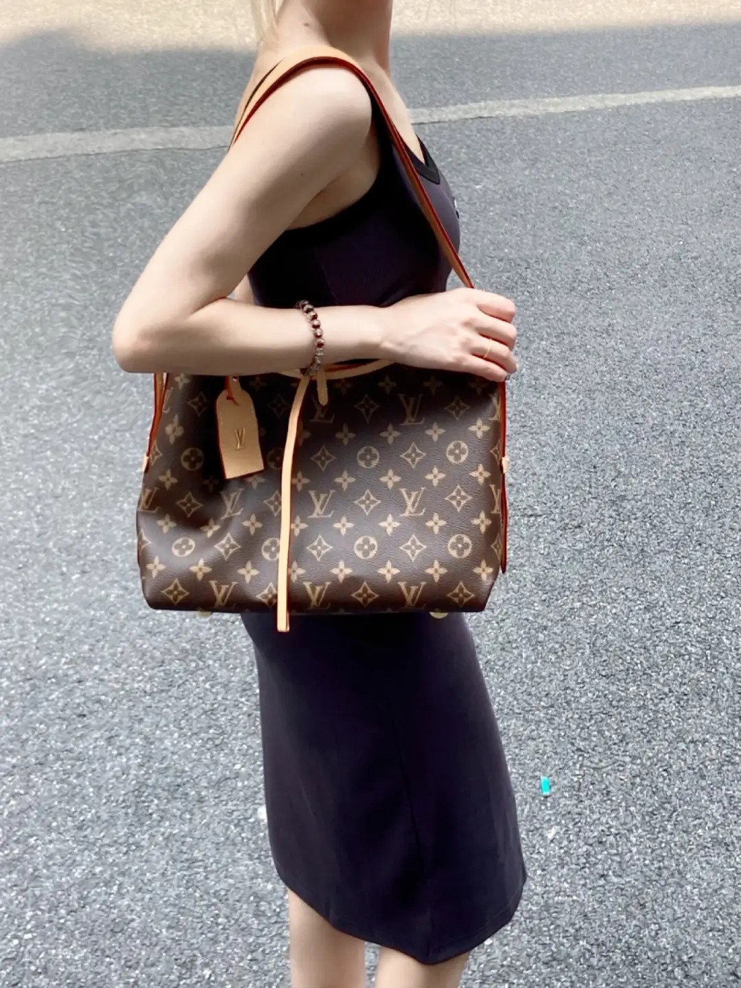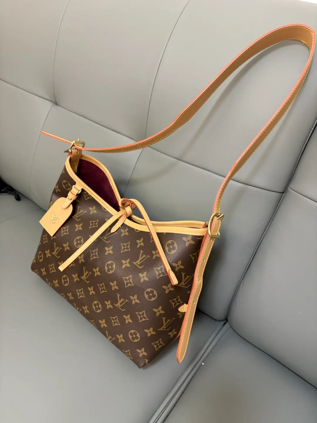 Louis Vuitton launches the CarryAll MM handbag in Monogram canvas with natural leather trim. Its contemporary, body-friendly design and roomy interior make this a fantastic everyday bag. Inside zipped pockets and a removable zipped pouch deliver even more functionality. A gold-color buckle allows the handle to be shortened or lengthened.