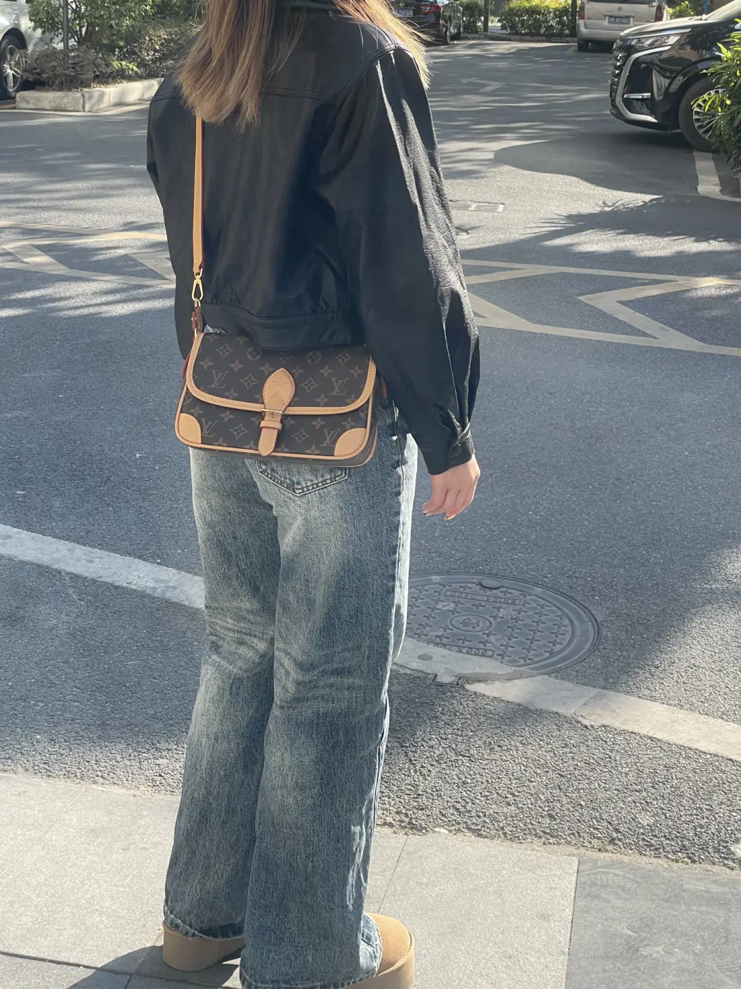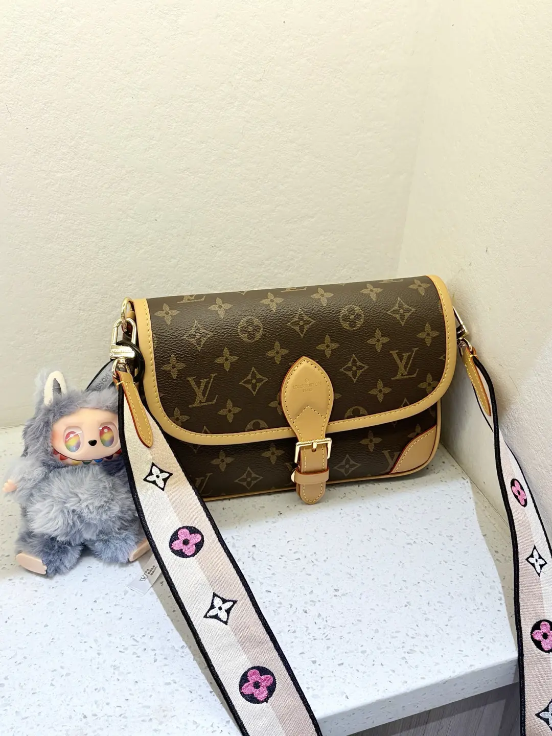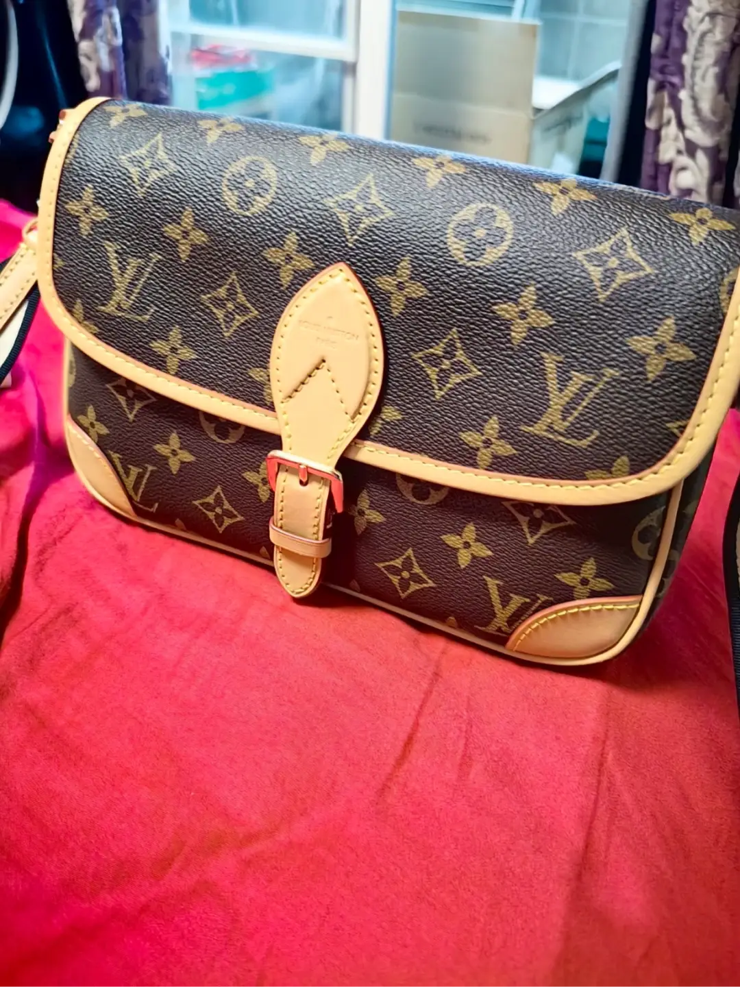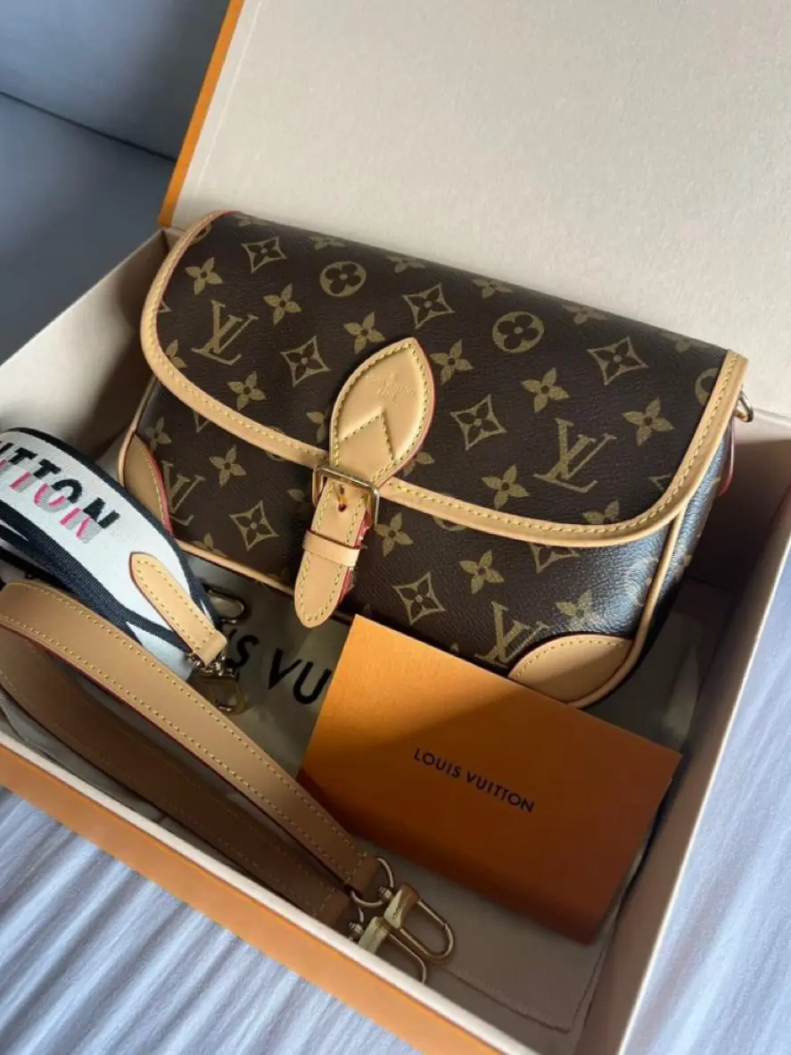 The Diane satchel in Monogram canvas revisits a classic model from the 90s, combining such vintage details as leather corners and an archival-inspired buckle with the modern functionality of smart pockets and a well-organized interior. The exclusive wide jacquard strap reverses from a bold Louis Vuitton signature to a subtle Monogram Flower motif.