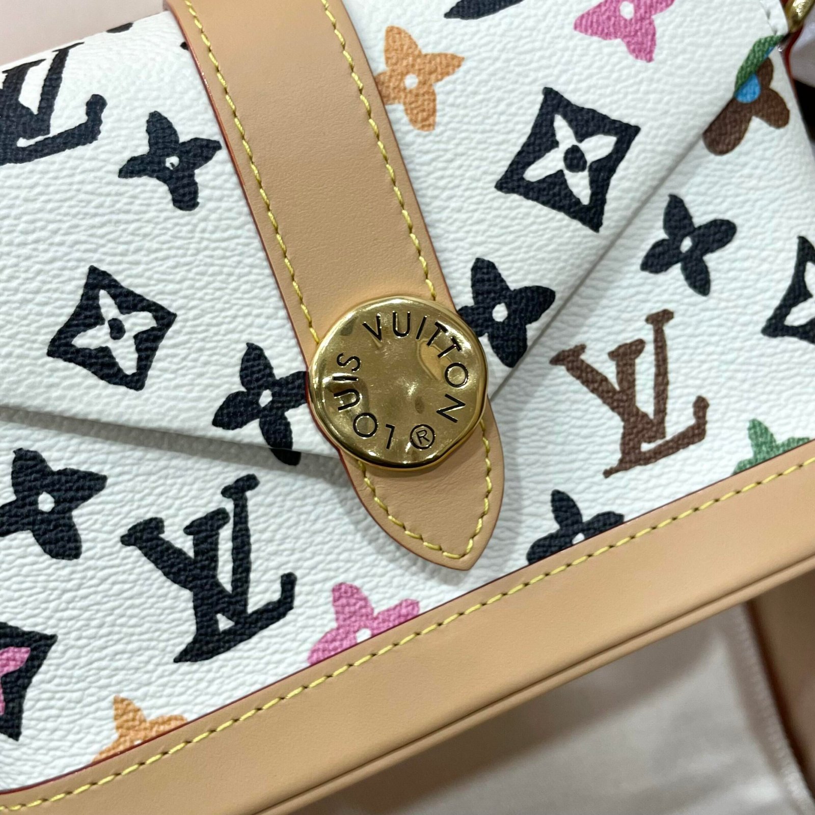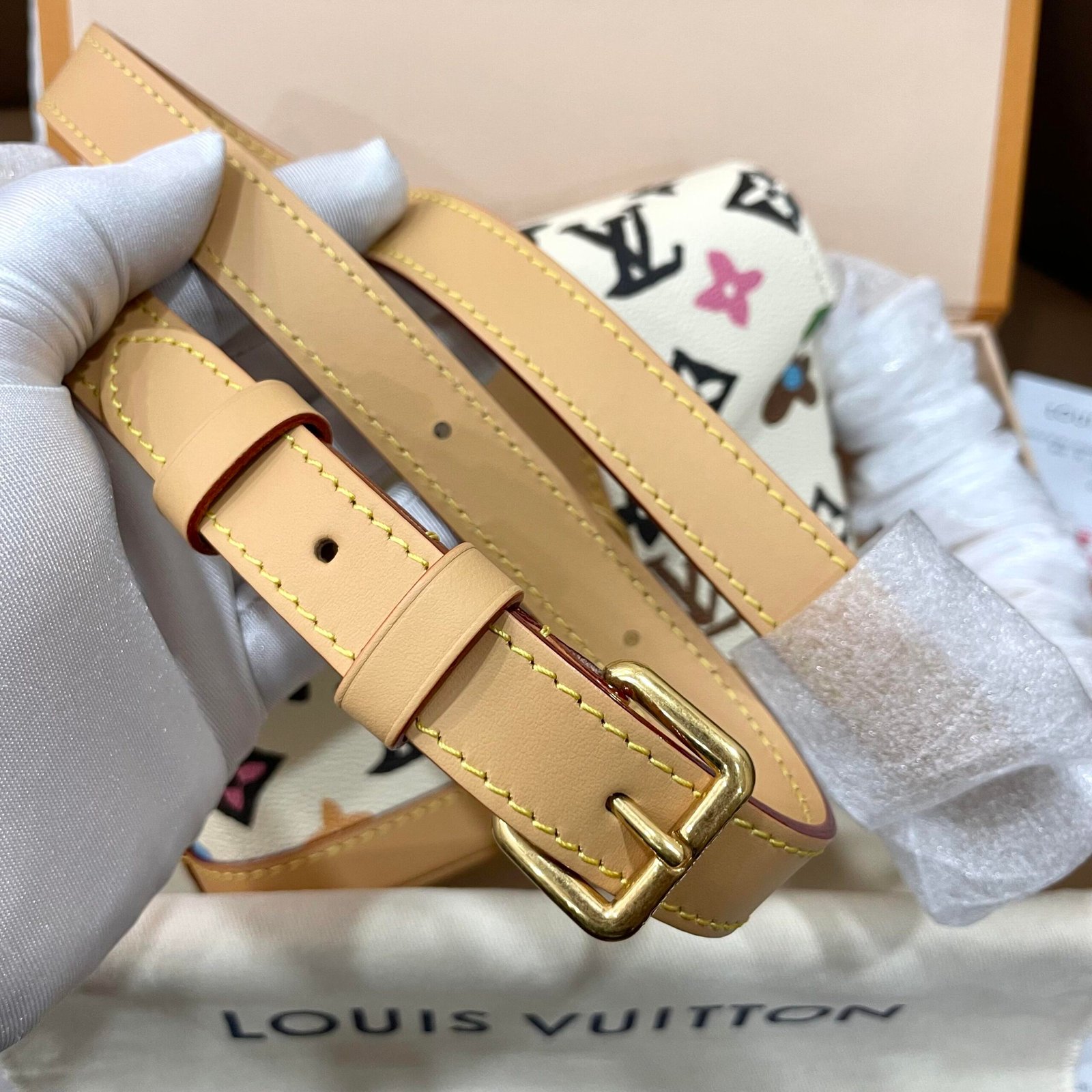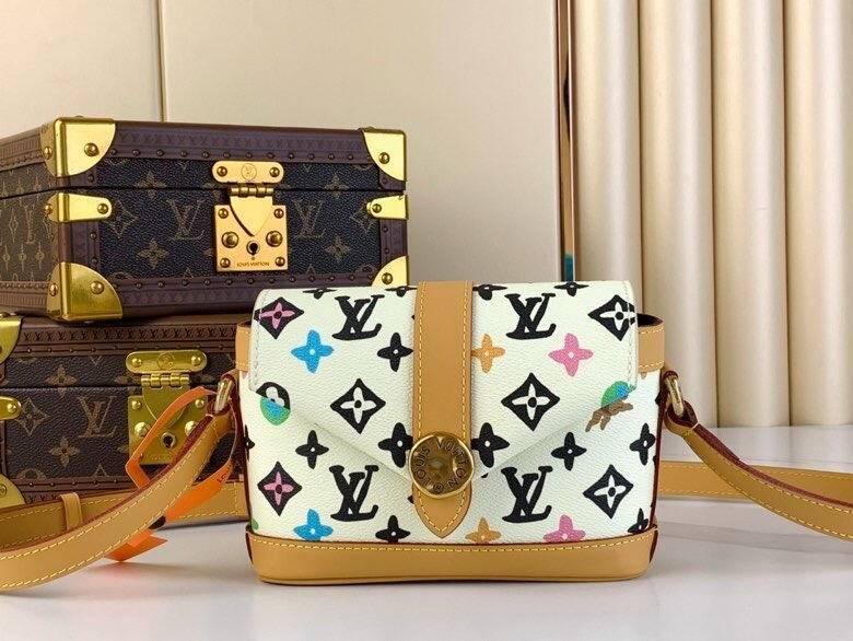 Inspired by the envelope design of the Louis Vuitton Cruiser travel bag, the Envelope Wearable Wallet features a triangular flap that closes with a Wavy magnetic button. The Monogram canvas has been reinterpreted by Tyler, into his colorful Craggy style, meaning drawn by hand, with daisies and fox terriers added to the pattern.