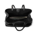 The leather lining is comfortable, and the double zip closure is secure. The interior zipped pocket and key bell are convenient features. It’s a bag that I’ll treasure for a long time.