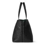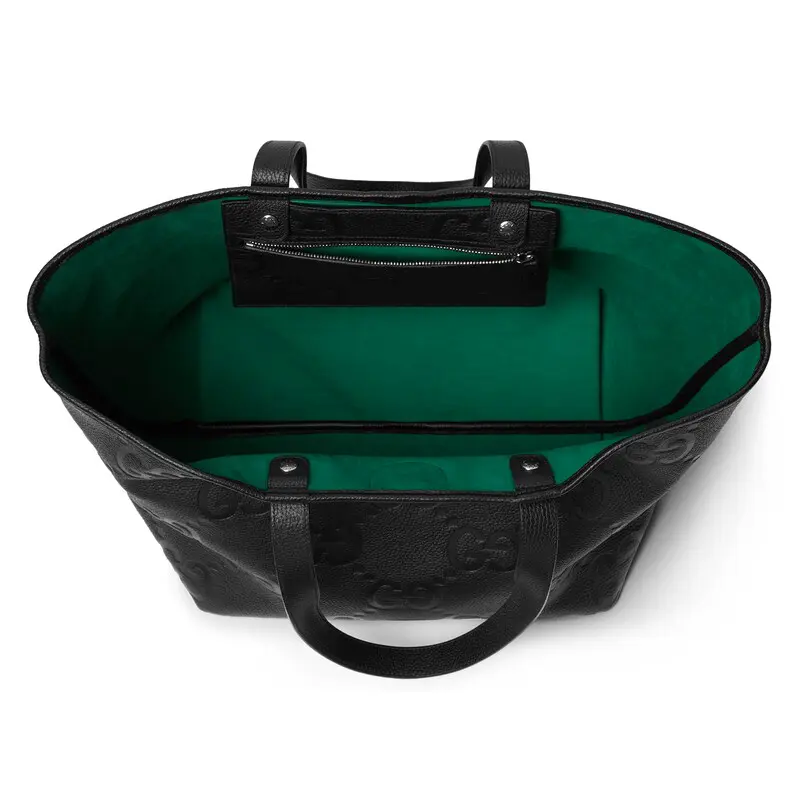 The jumbo GG design continues for Cruise 2025 with a new grainy texture. A reinterpretation of Guccio Gucci’s initials, the motif is an evergreen of the House that appears prominently in maxi dimensions for an eye-catching logo feel. This tote bag in the emblematic leather features an additional D-ring for detachable items.