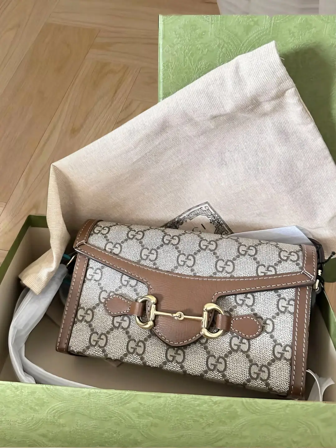 The combination of the beige GG ‒ print canvas and rich brown leather trim is simply stunning.The iconic horsebit detail in gold adds a touch of luxury and classic charm🤩. Customer service was top ‒ notch. They were incredibly helpful, answering all my questions promptly and providing detailed information. The delivery was fast and the package arrived in pristine condition.