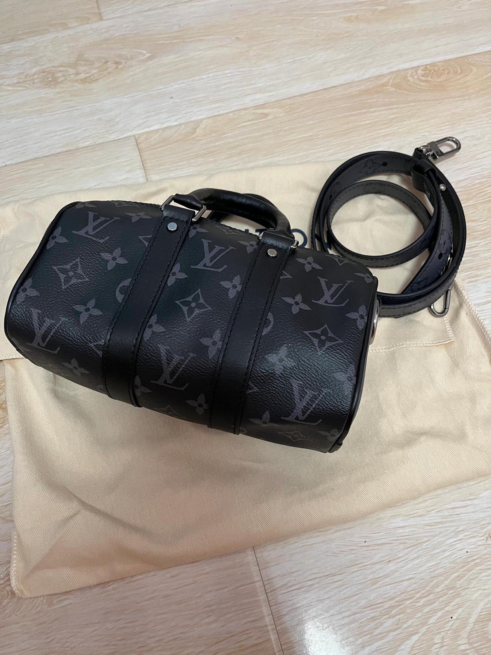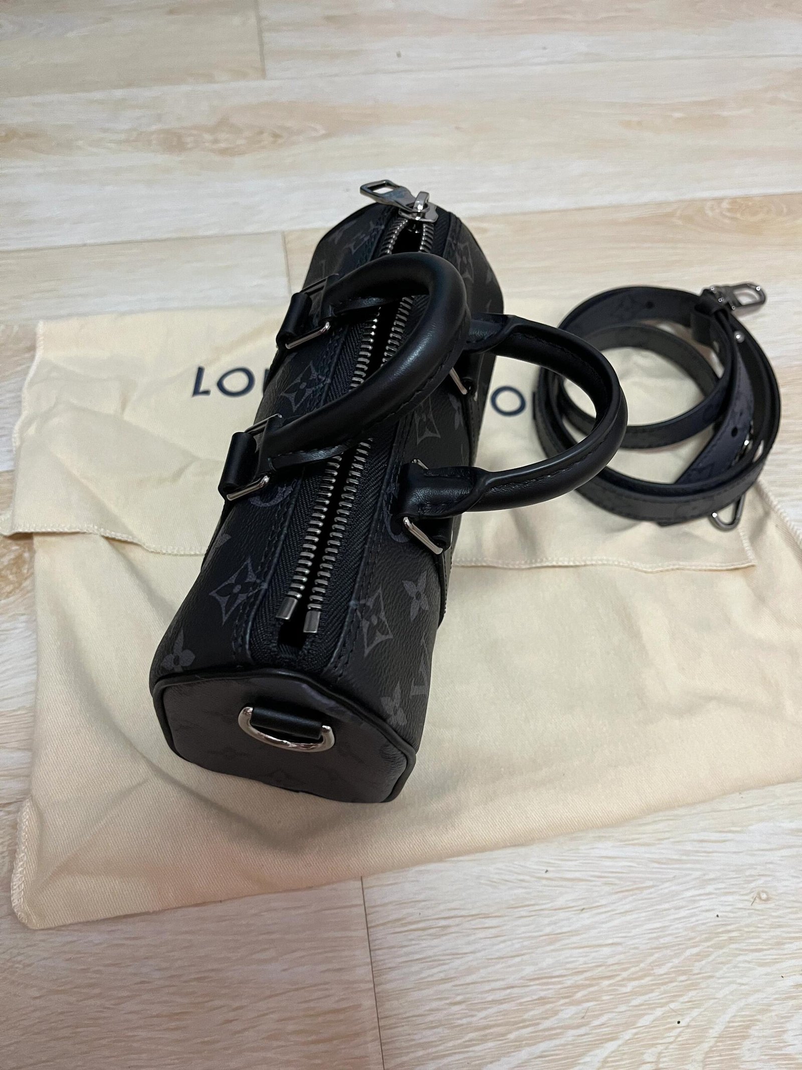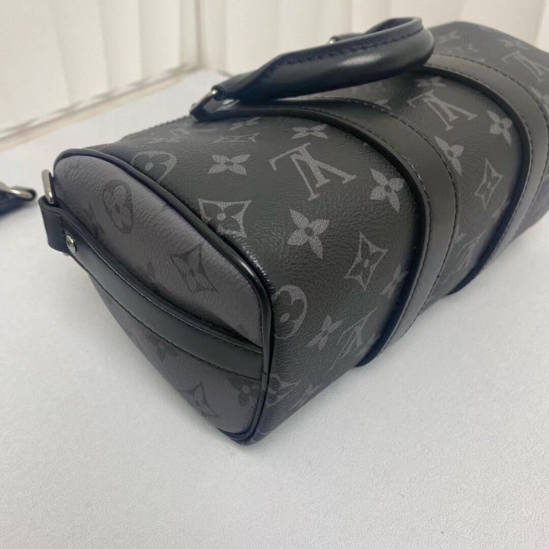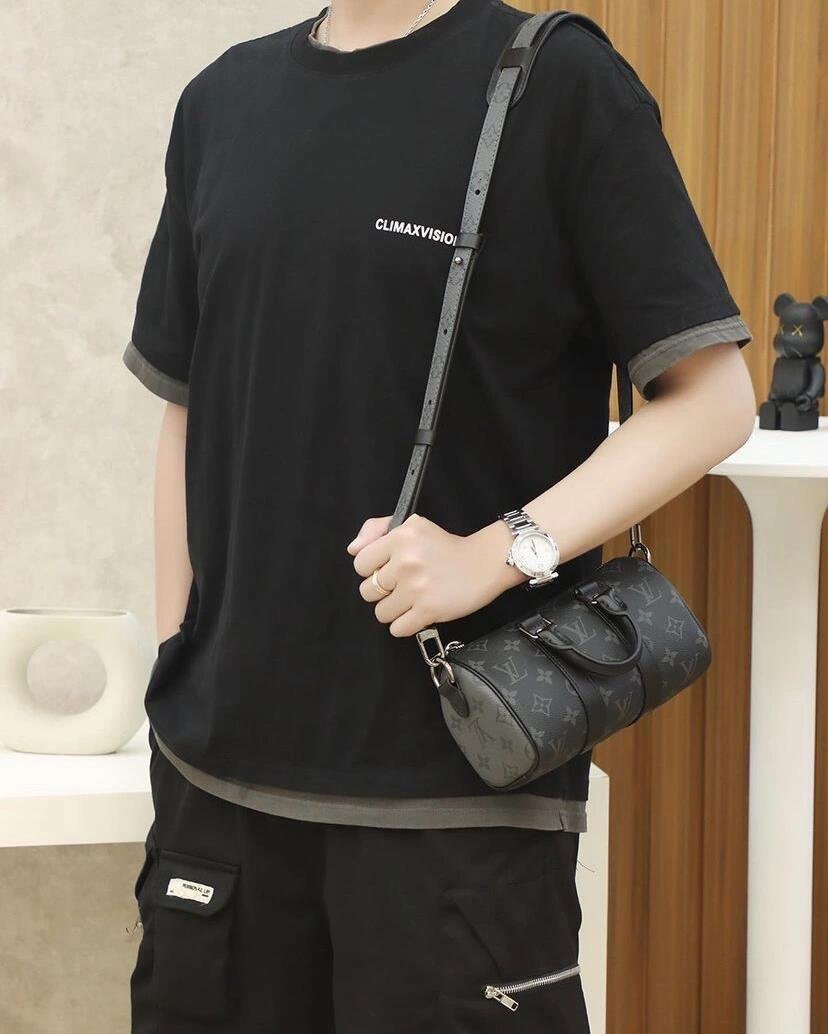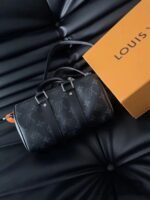 Features: This handbag is a mini version of Louis Vuitton’s classic Keepall series, crafted from Monogram Eclipse Reverse coated canvas with black leather trim, blending modern and classic elements. It features a top handle and an adjustable shoulder strap, allowing for hand-carry, shoulder, or crossbody wear, suitable for daily use.