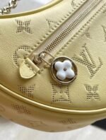 This Loop handbag is made from calfskin with a Monogram motif that at first looks to be perforated into the leather. Closer inspection reveals that the Monogram is embossed into the cowhide. A removable, pale-gold-color chain and a cross-body shoulder strap give carry options. The front pocket closes with a Monogram Blossom zip pull.