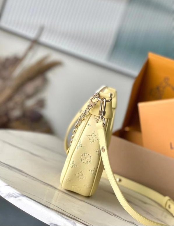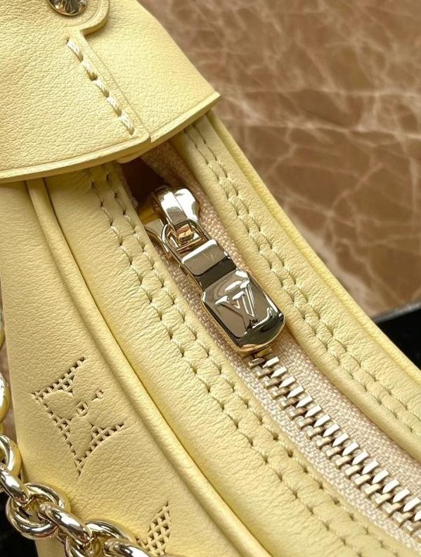 This Loop handbag is made from calfskin with a Monogram motif that at first looks to be perforated into the leather. Closer inspection reveals that the Monogram is embossed into the cowhide. A removable, pale-gold-color chain and a cross-body shoulder strap give carry options. The front pocket closes with a Monogram Blossom zip pull.