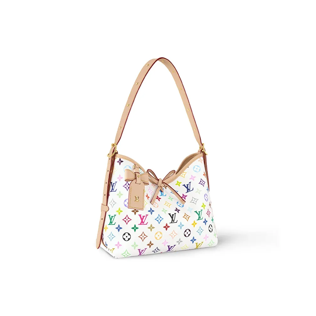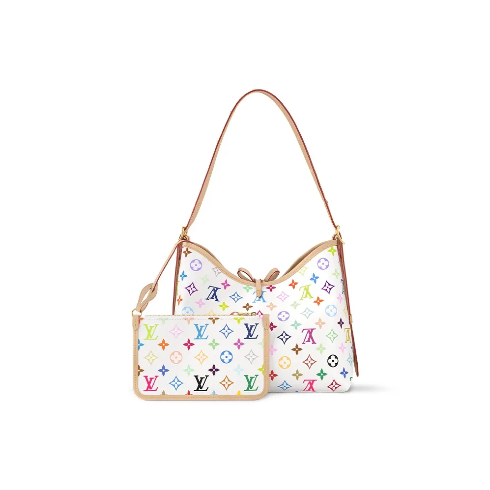 Joyful details uplift the classic CarryAll PM handbag with a playful spirit as part of the re-edition of the Louis Vuitton x Murakami collection. The body-friendly design is crafted from Monogram coated canvas that has been vibrantly reimagined in the Japanese artist’s signature palette, while the House’s emblematic natural cowhide leather frames the silhouette and the name tag is adorned with a chic bow detail.