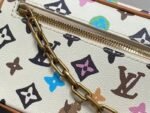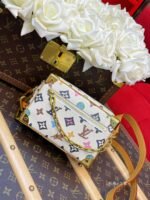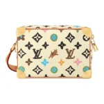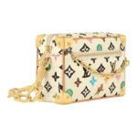 The fusion of tradition and modernity, this Mini Soft Trunk bag is fashioned from Monogram Craggy canvas. The Monogram takes on a hand-drawn feel and includes daisies and dogs in addition to Monogram Flowers and LVs. The chain connected to the adjustable strap is a golden hue as the decorative chain on the front zipper.