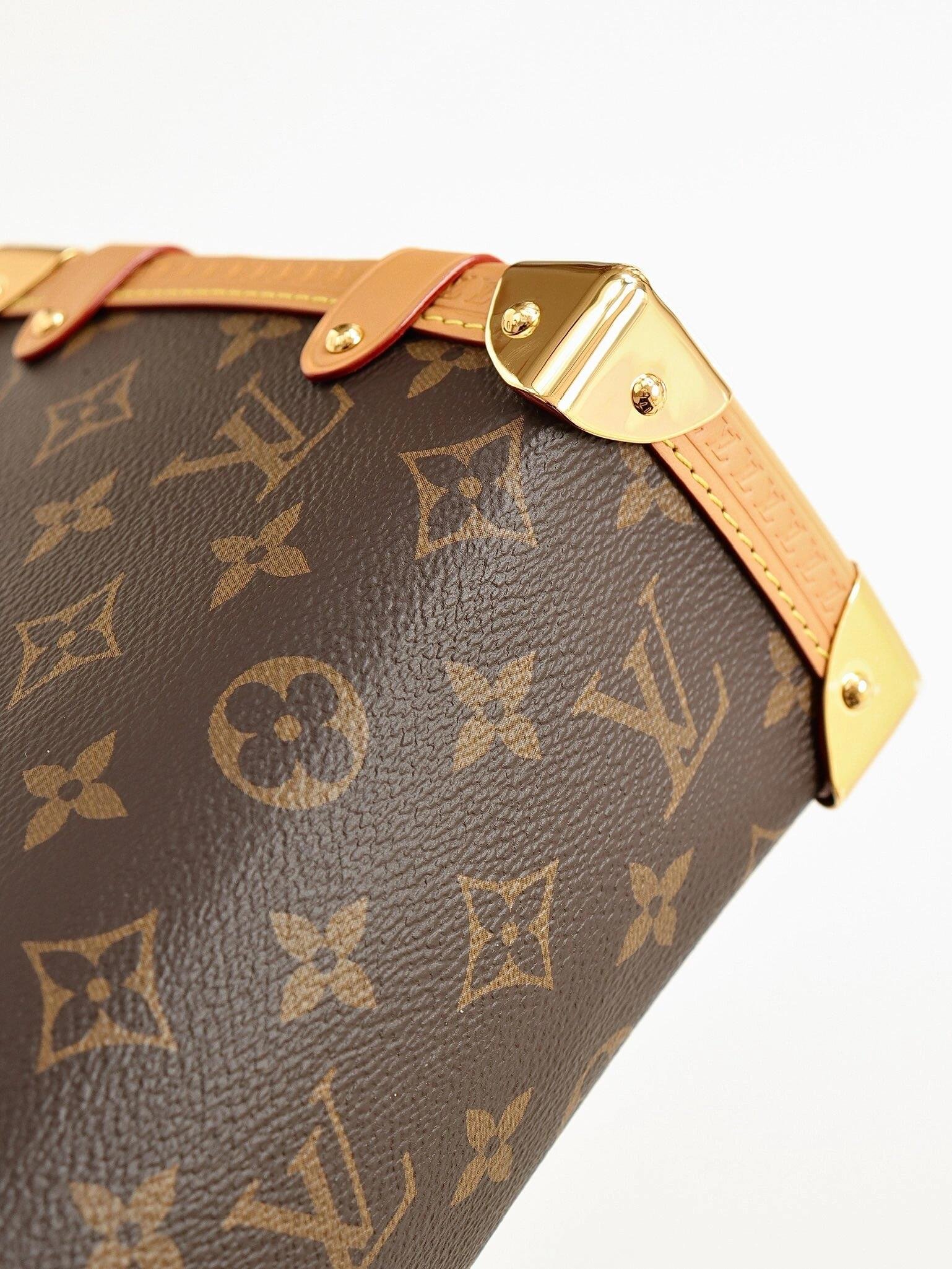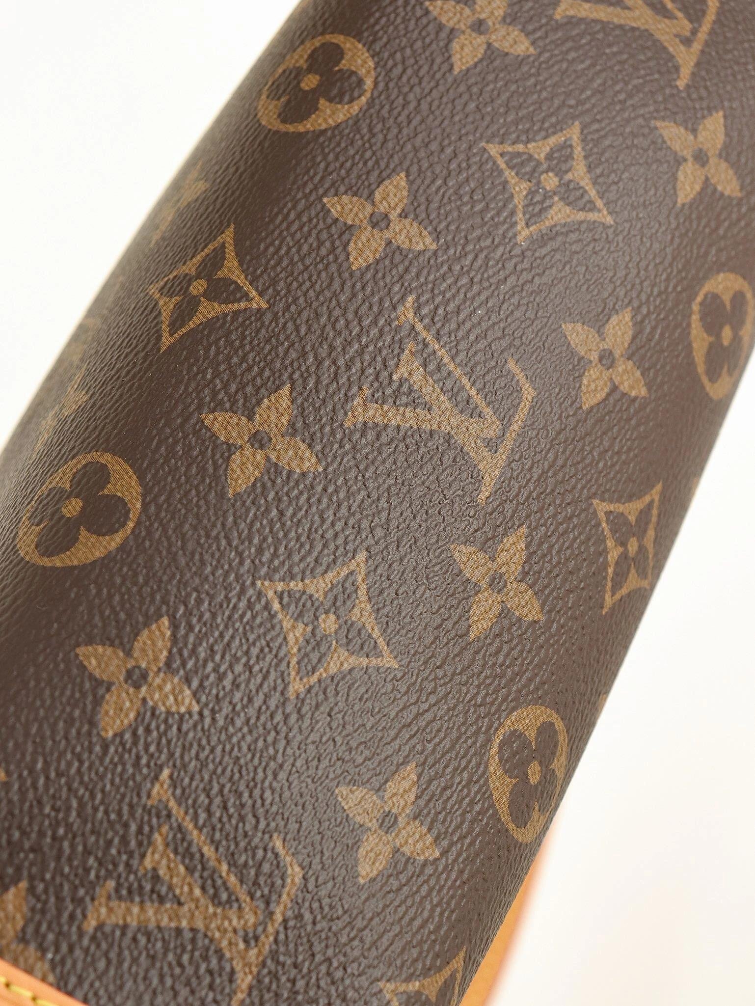 Material: Monogram coated canvas, cowhide leather trim, textile lining, aged gold-tone hardware