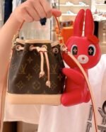 This exclusive edition of the Nano Noé is the result of an exclusive collaboration between Louis Vuitton Artistic Director Nicolas Ghesquière and the artist Sun Yitian. Inspired by her colorful paintings of mass-produced toys, the Monogram-canvas bag features a pink, non-detachable leather rabbit playfully clinging to one side. This charming, collectible piece is sure to bring joy to your every day.