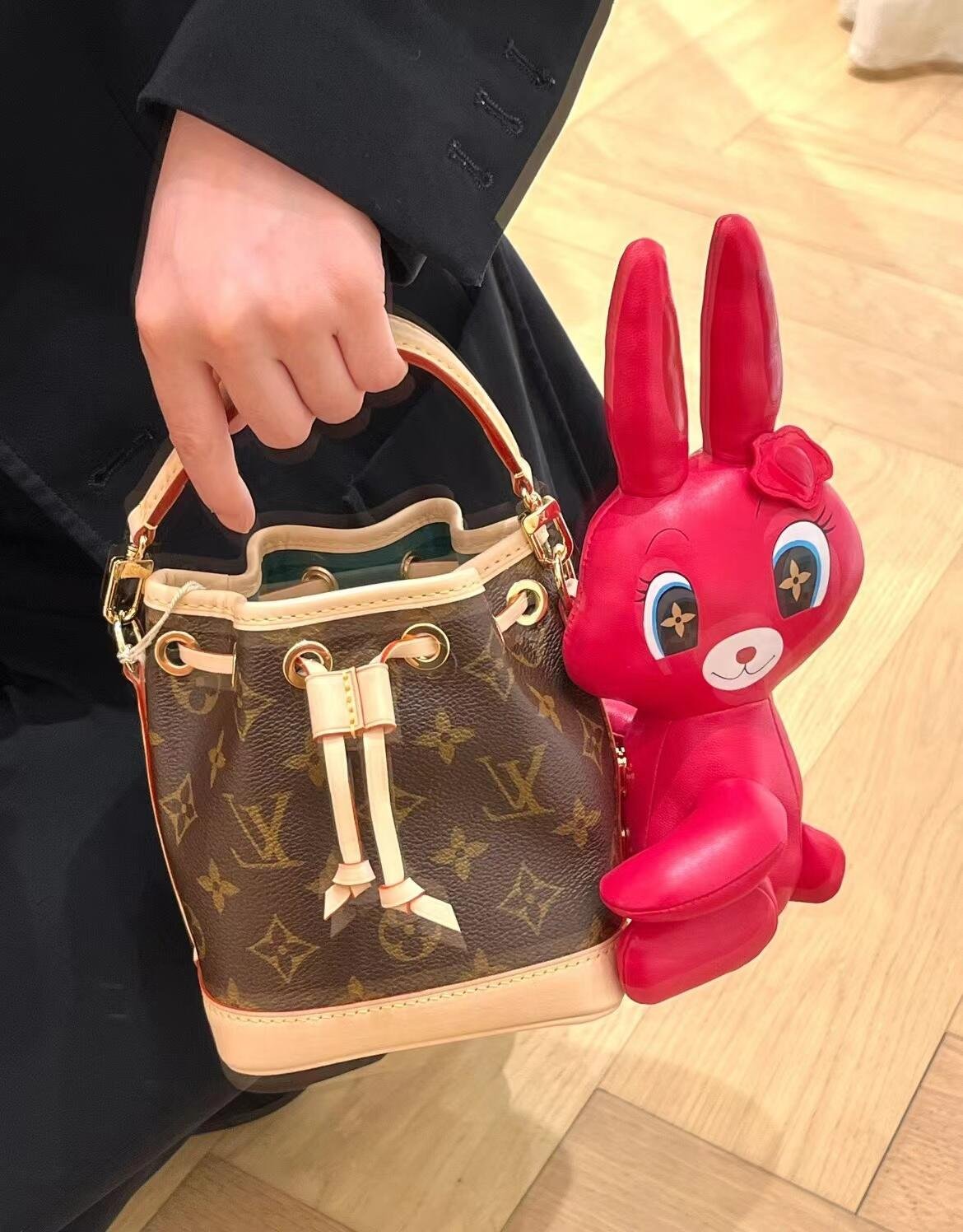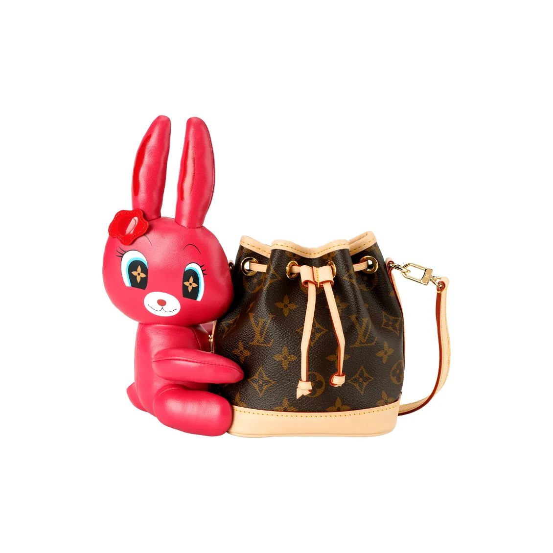 This exclusive edition of the Nano Noé is the result of an exclusive collaboration between Louis Vuitton Artistic Director Nicolas Ghesquière and the artist Sun Yitian. Inspired by her colorful paintings of mass-produced toys, the Monogram-canvas bag features a pink, non-detachable leather rabbit playfully clinging to one side. This charming, collectible piece is sure to bring joy to your every day.