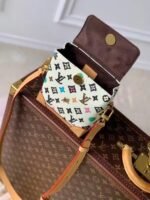 The Nano Steamer bag is a miniature version of the House’s vintage Steamer Bag. As part of the collaboration with Tyler, it’s fashioned from Monogram Craggy canvas, Tyler’s reimagining of the Monogram motif, giving it a drawn-by-hand feel. The reinforced corners and shoulder strap are in cowhide-leather as is the flap.