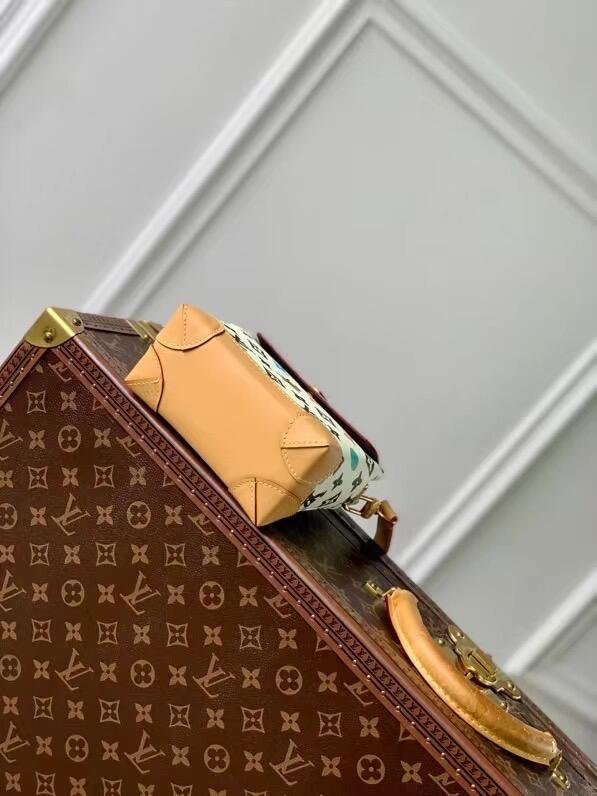 The Nano Steamer bag is a miniature version of the House’s vintage Steamer Bag. As part of the collaboration with Tyler, it’s fashioned from Monogram Craggy canvas, Tyler’s reimagining of the Monogram motif, giving it a drawn-by-hand feel. The reinforced corners and shoulder strap are in cowhide-leather as is the flap.