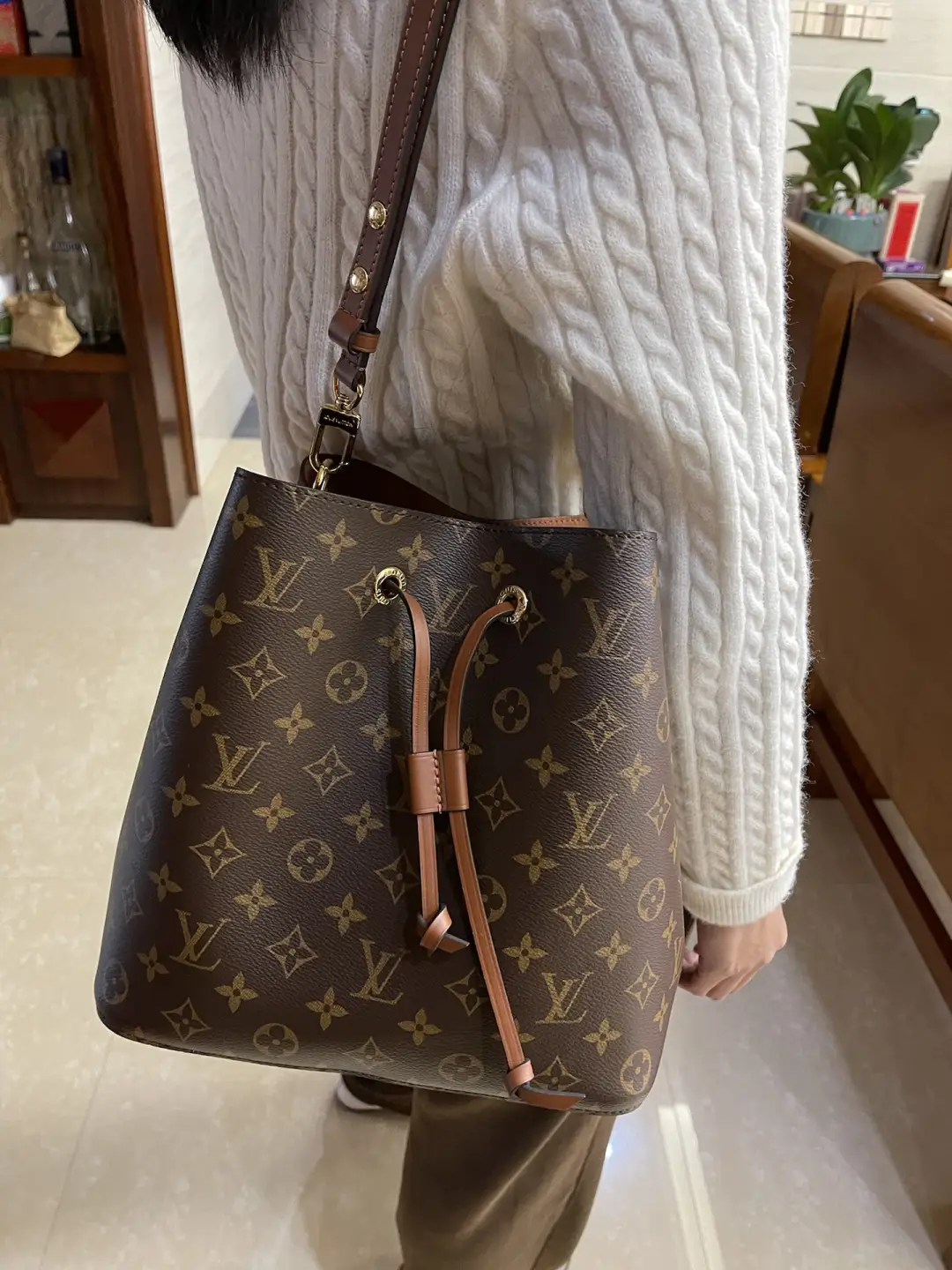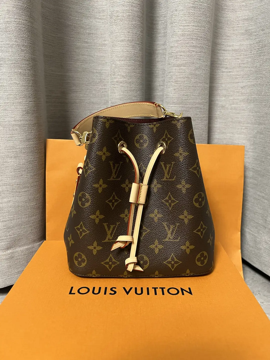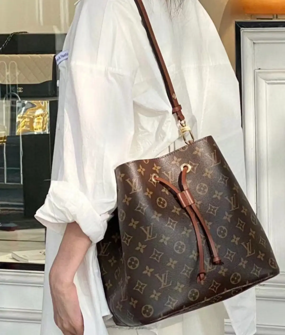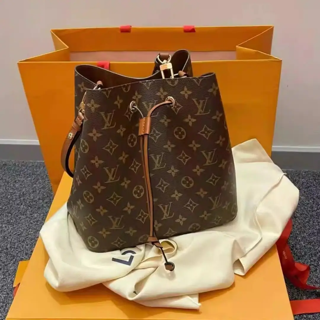 A true House icon, the NéoNoé bucket bag revisits a 1932 design by Gaston-Louis Vuitton. The original was created to transport bottles of Champagne in style; this modern version in Monogram canvas features a sleek shape, colorful leather trim and a matching bonded lining. The adjustable smart strap can be slung over the shoulder or lengthened for a trendy cross-body carry.
