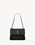 bag with front flap and the CASSANDRE, featuring a convertible leather-and-chain shoulder strap.
