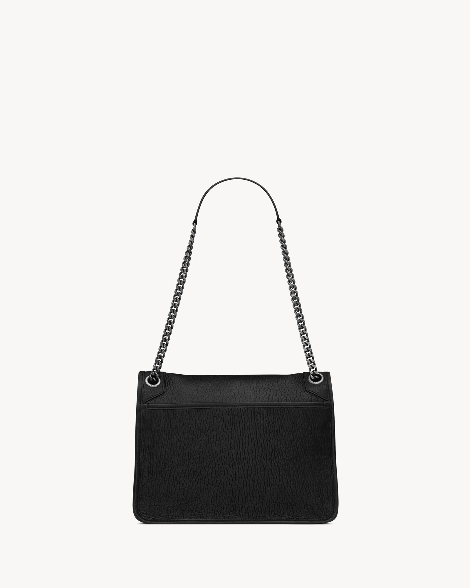 bag with front flap and the CASSANDRE, featuring a convertible leather-and-chain shoulder strap.