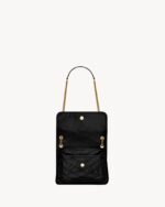 FEATURES A SLIDING CHAIN STRAP THAT CAN BE WORN ON THE SHOULDER OR CROSSBODY.