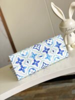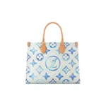 This OnTheGo MM tote is made from Monogram Tiles canvas, with its watercolor-style Monogram print and LV Circle centered on the bag. The two top handles, and concealed shoulder straps, are in cowhide leather, as are the four riveted corner tabs. This roomy bag can easily carry a laptop as well as other daily necessities.