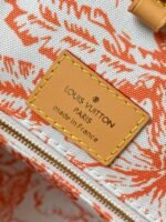 This OnTheGo MM tote is made from Monogram Tiles canvas, with its watercolor-style Monogram print and LV Circle centered on the bag. The two top handles, and concealed shoulder straps, are in cowhide leather, as are the four riveted corner tabs. This roomy bag can easily carry a laptop as well as other daily necessities.
