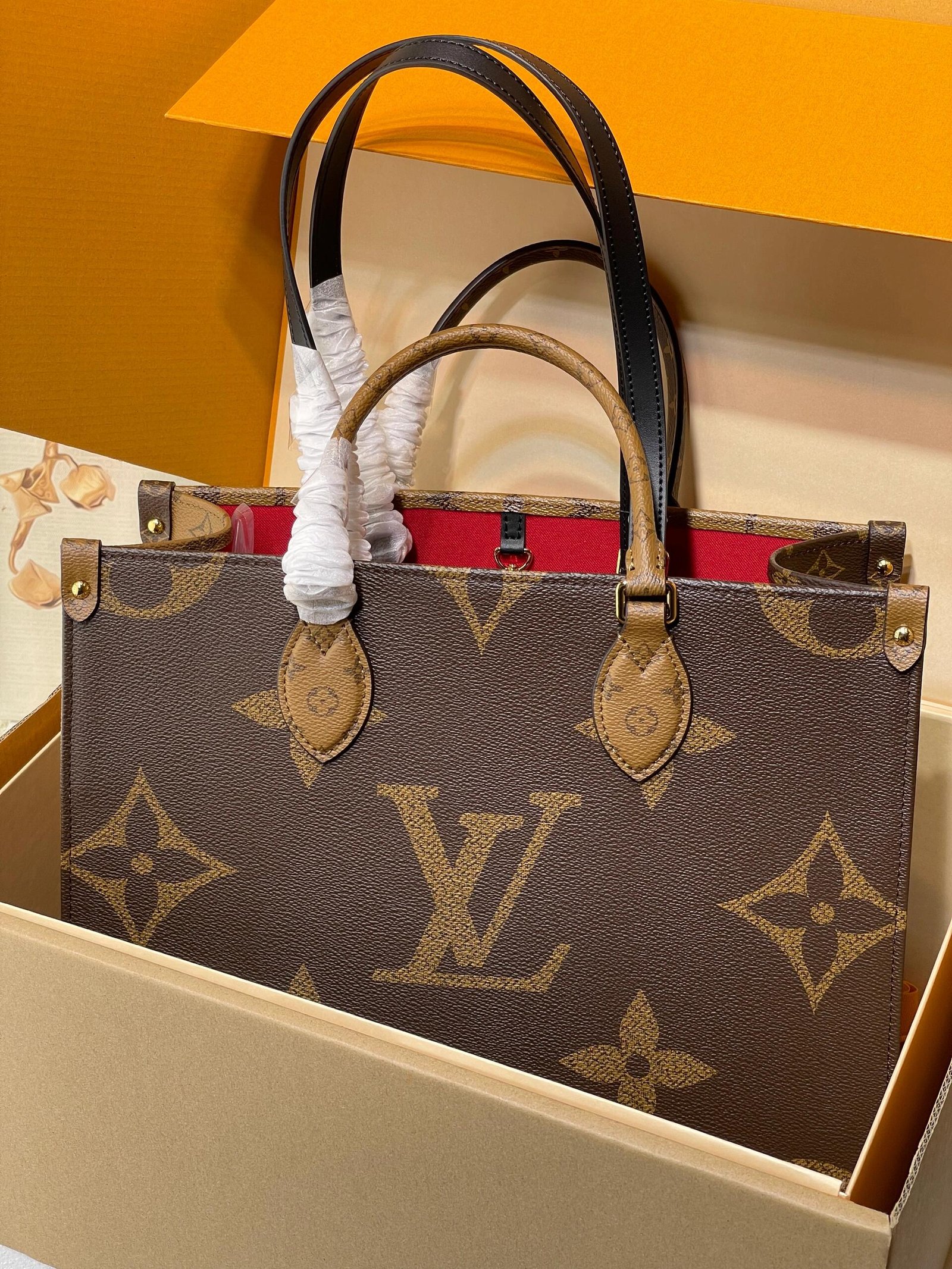 The name says it all: OnTheGo MM takes care of business or shopping, with plenty of room for a busy woman’s essentials. With Giant Monogram canvas on one side and Monogram Reverse on the other, it is virtually two bags in one. Twin Toron top handles and two shoulder straps offer several different carry styles, for extra versatility.