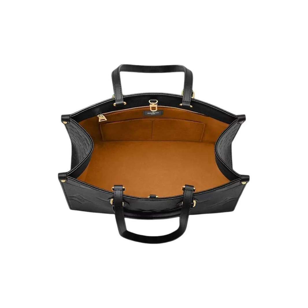 For Spring 2021, Louis Vuitton launches the Onthego MM tote bag in grained Monogram Empreinte, a soft leather that is embossed with a large and modern Monogram pattern. Thanks to the square shape, it boasts a generous capacity and can easily fit a laptop. Its articulated top handles and shoulder straps give carrying options.