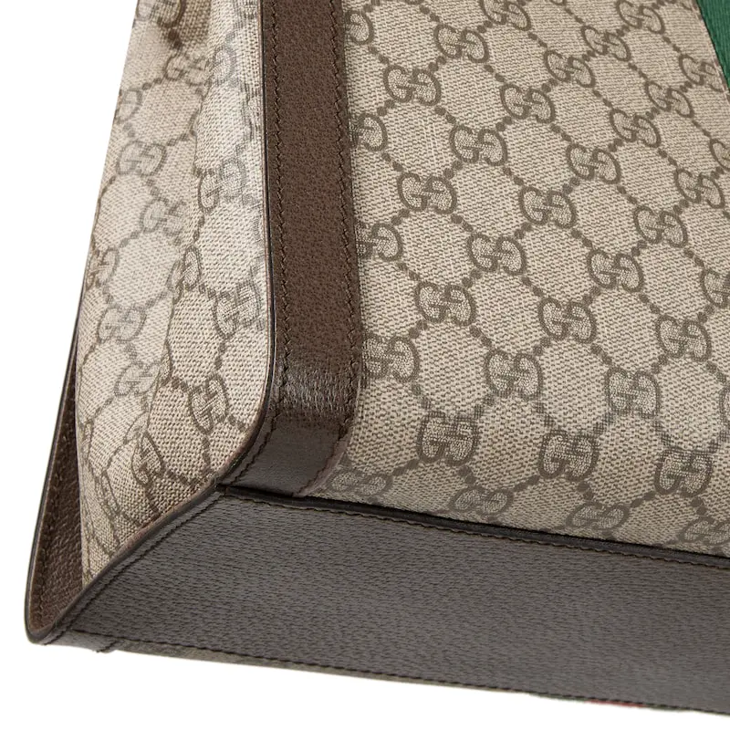 Imbued with retro-inspired references, the world of Ophidia evolves with the introduction of a large tote bag defined by a squared shape that recalls vintage designs. Crafted in GG Supreme, the accessory features some of the most distinctive House codes, like the green and red Web stripe, an homage to the equestrian world, and the Double G from the ’70s archives, here reworked with a sophisticated take. The bag is completed with a detachable shoulder strap which allows it to be carried in multiple ways.