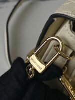 This handbag is a true beauty! The craftsmanship is evident in the detailed quilting. The gold emblem is a nice focal point. It’s not too big or too small, just right for carrying my essentials.