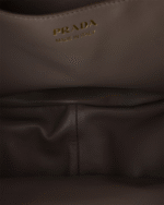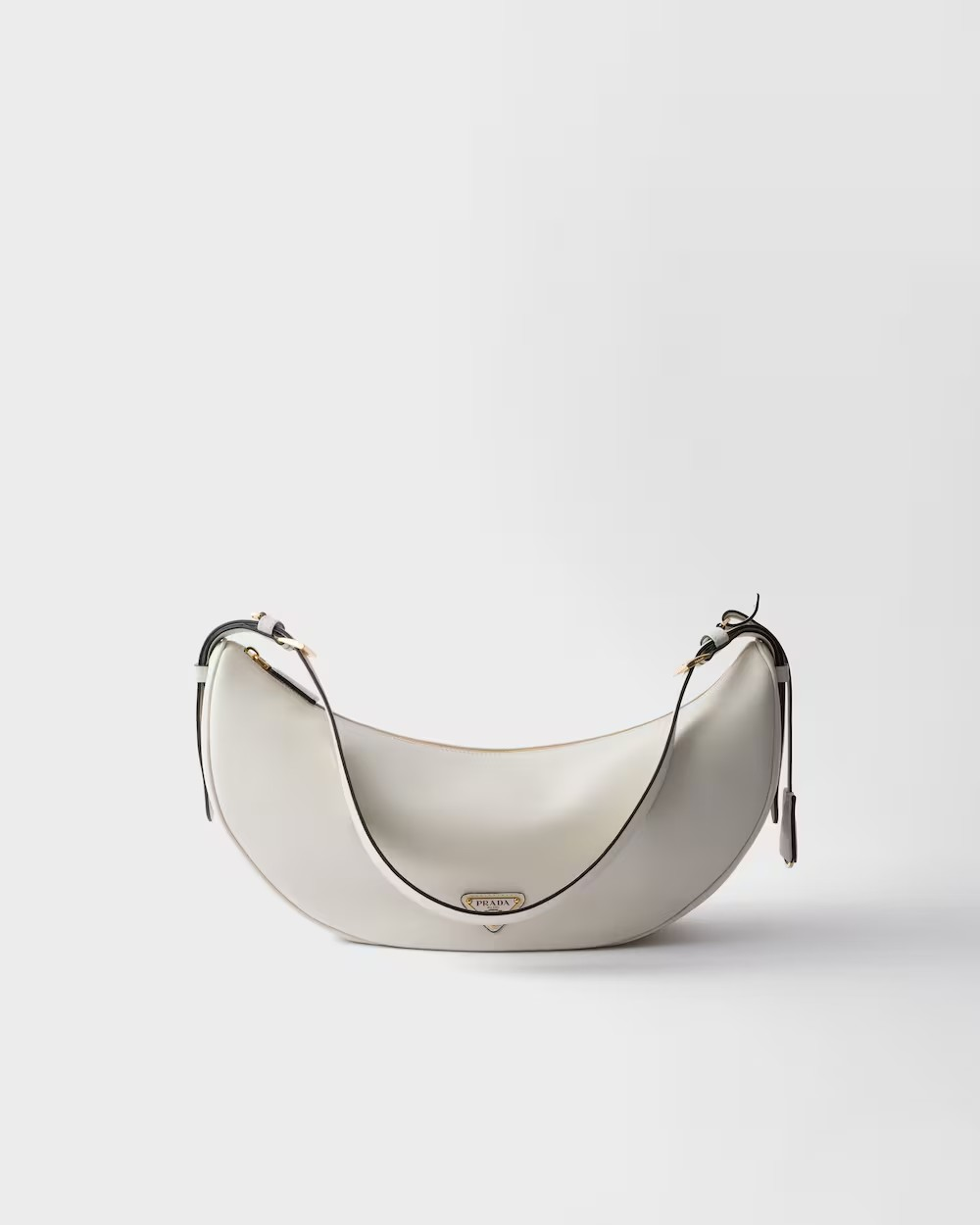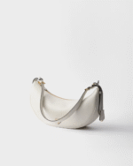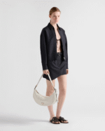 This leather bag with a soft, lightweight design offers a new interpretation of the iconic crescent silhouette. Sinuous lines and oversized volumes define the roomy and versatile accessory that can be worn as a cross-body or shoulder bag thanks to the adjustable handle. The enameled metal triangle logo adds its signature touch to the refined, contemporary bag.