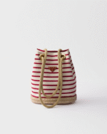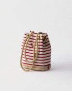 The nautical-inspired stripe motif adds color to this small fabric bucket bag. The espadrille-style base and the cord, another symbol of the nautical world, are a strong reference to summer.